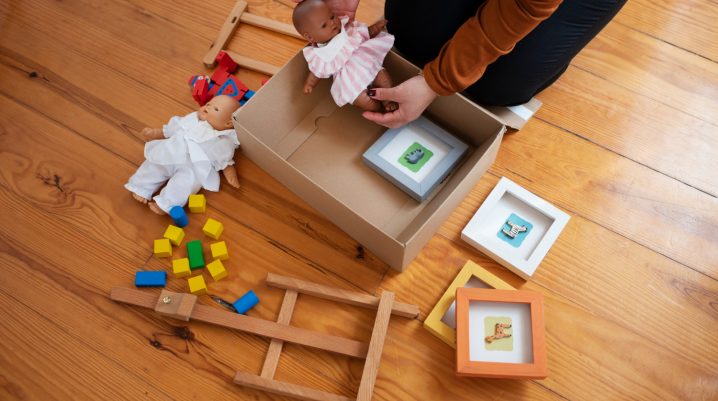 Această metodă are două avantaje. În primul rând, spațiul rămâne mai aerisit. În al doilea rând, copiii redescoperă jucăriile atunci când acestea sunt scoase din nou la joacă, ceea ce le menține interesul mai mult timp.